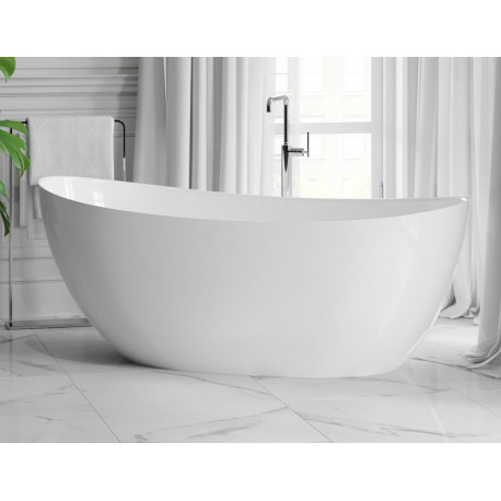 Omnires > Vany > Volně stojící vany > Wanny wolnostojące > Vana volně stojící Emporia Luna 158x77x63 cm z konglomerátu, bez zintegrowanego przelewu, s povrchem Snow White - bílá