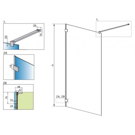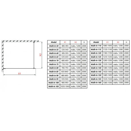Radaway > Sprchové boxy > Volně stojící zástěny > Essenza Pro > Sprchový kout Radaway Essenza Pro 8 Brushed GunMetal Walk-In II 110 cm, wys. 200 cm, sklo čiré 8 mm