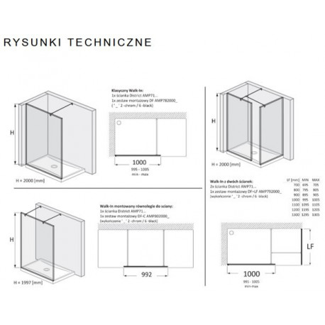 Montání sada Roca DF do kompletacji z ścianką District AMP71… (klasyczny Walk-In) Série: Čtvercové