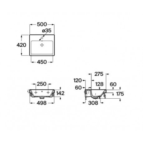 Roca > Sanitární keramika > Závěsná umyvadla > Gap > Umyvadlo stěnová Roca Gap, 50 x 42 cm s otvorem na baterie, z přepadem - bílá