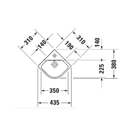 Duravit > Sanitární keramika > Závěsná umyvadla > ME by Starck > Rohové umyvadlo Duravit ME by Starck 44x38 cm, z přepadem, s otvorem pro baterii - bílá