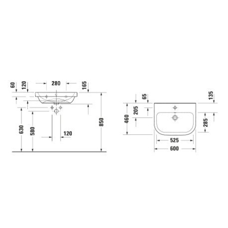 Duravit > Sanitární keramika > Závěsná umyvadla > D-Code > Závěsné umyvadlo Duravit D-Code 60x46 cm, s otvorem pro baterii, z přepadem, tył glazurowany - bílá
