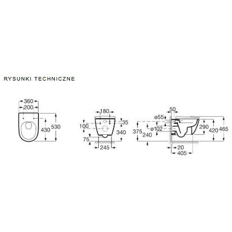 Roca > Sanitární keramika > Závěsné WC mísy > Ona > Mísa WC podvěsná, Roca Ona 36x53 cm, Rimless Vortex - bílá
